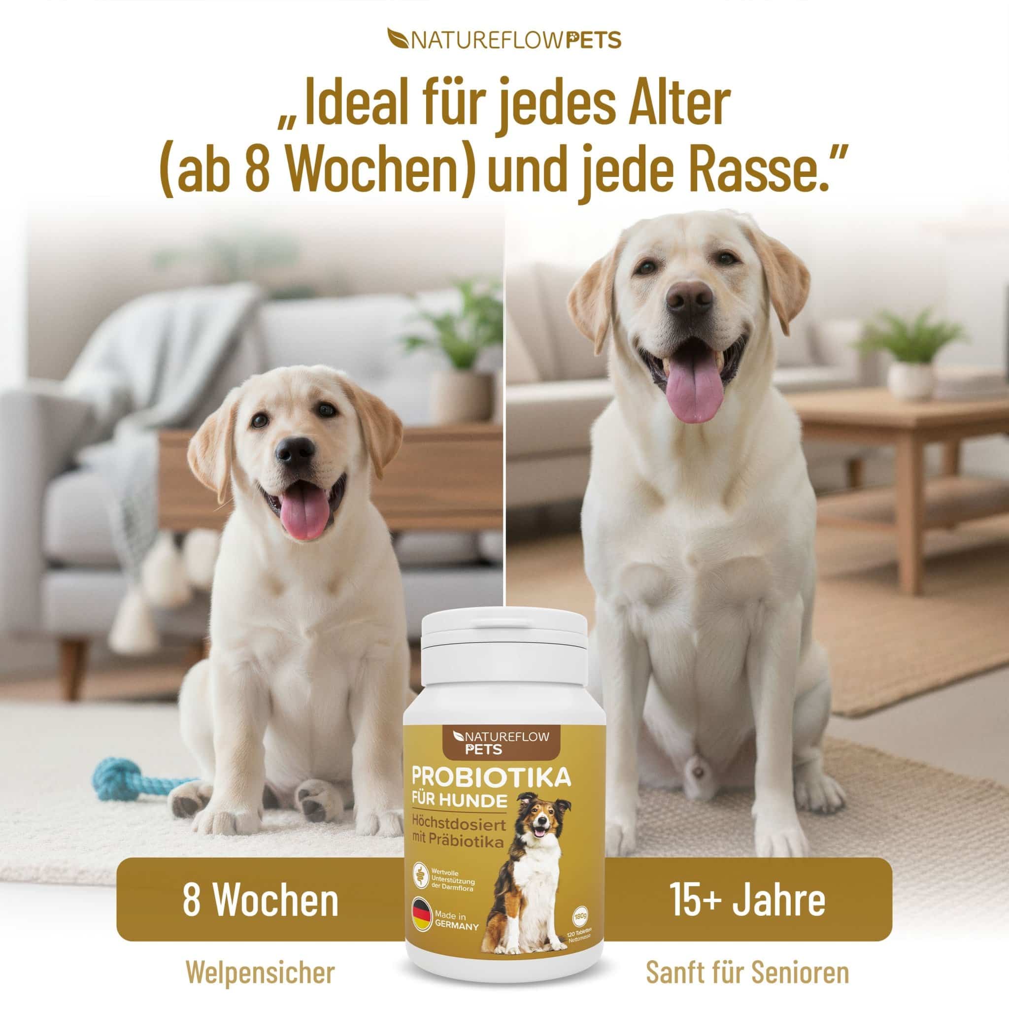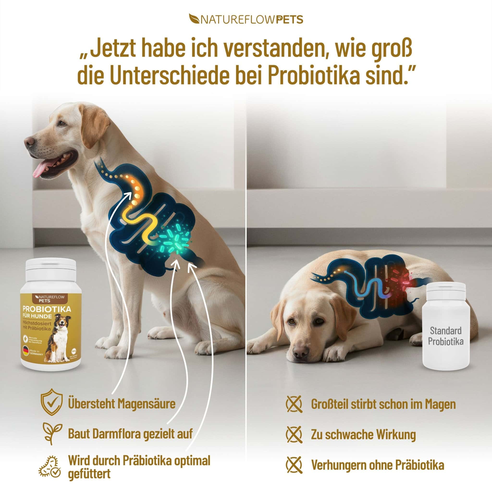 Mit dem Prä- & Probiotikum von Natureflow Pets erhältst du ein hochwertiges, natürliches Ergänzungsfuttermittel, das speziell zur Unterstützung der Darmflora deines Hundes entwickelt wurde – ideal für Hunde mit sensibler Verdauung oder nach Antibiotika & Wurmkuren.