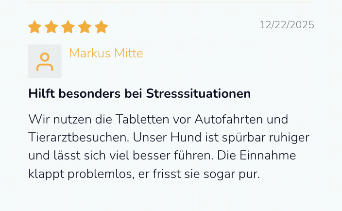 Bei akuten Stresssituationen (z. B. Silvester, Autofahrten, Alleinbleiben oder Tierarztbesuche) können die Tabletten ca. 30–60 Minuten vor dem Ereignis verabreicht werden.