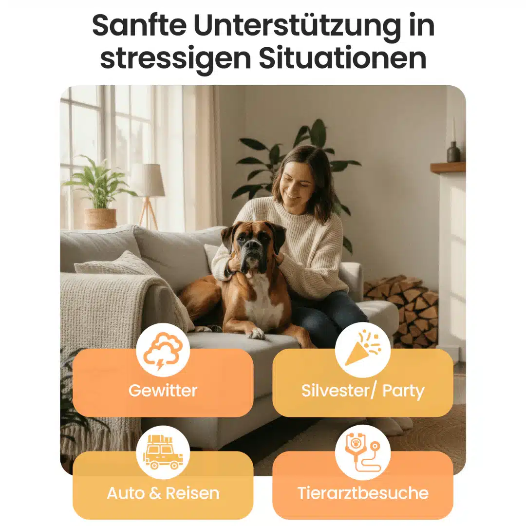 Mehr Ruhe & Gelassenheit für deinen Hund – egal ob bei Gewitter, beim Reisen, an Silvester oder bei Tierarztbesuchen